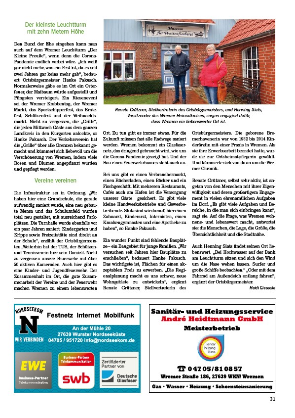 Vorsitzender des Wremer Heimatkreises, sorgen engagiert dafür,