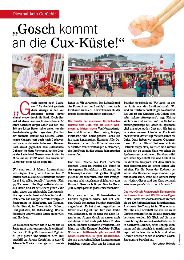 Cuxhaven zu holen. Hier wollen wir ab Mai