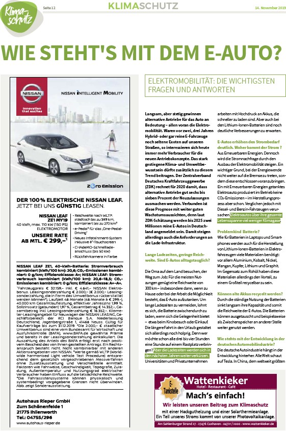 Seite 12 14. November 2019 KLIMASCHUTZ Klimaschutz