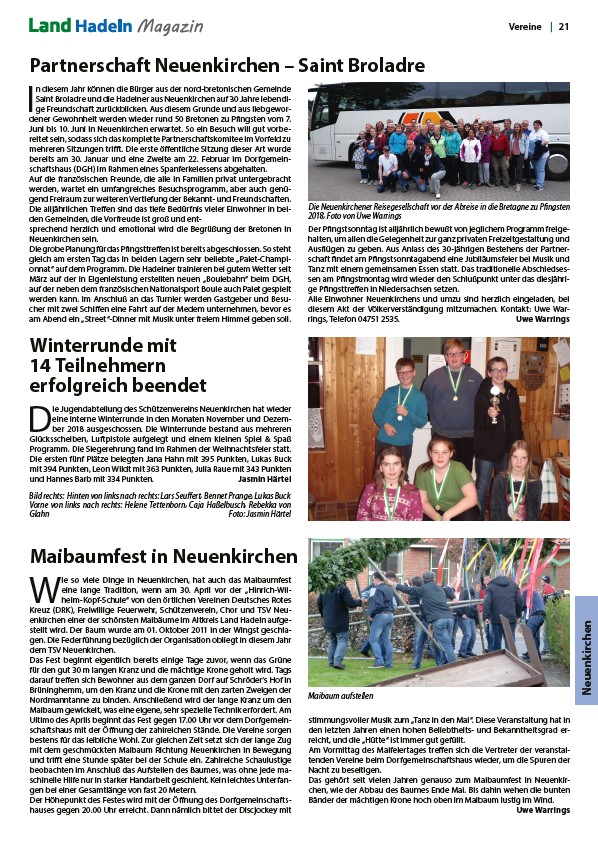 Juni bis 10. Juni in Neuenkirchen erwartet. So ein Besuch will gut vorbereitet