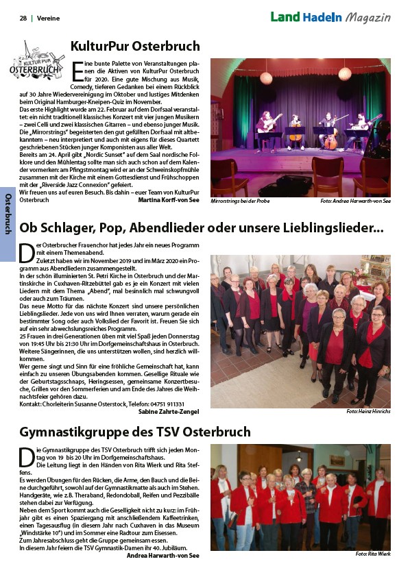 Kontakt: Chorleiterin Susanne Osterstock, Telefon: 04751 911331