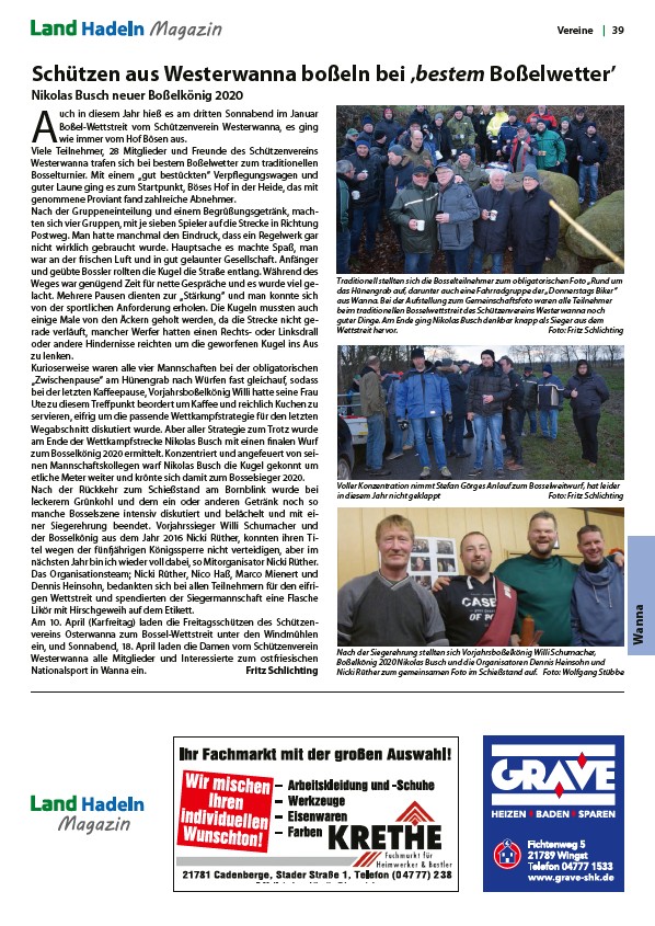 beim traditionellen Bosselwettstreit des Schützenvereins Westerwanna noch