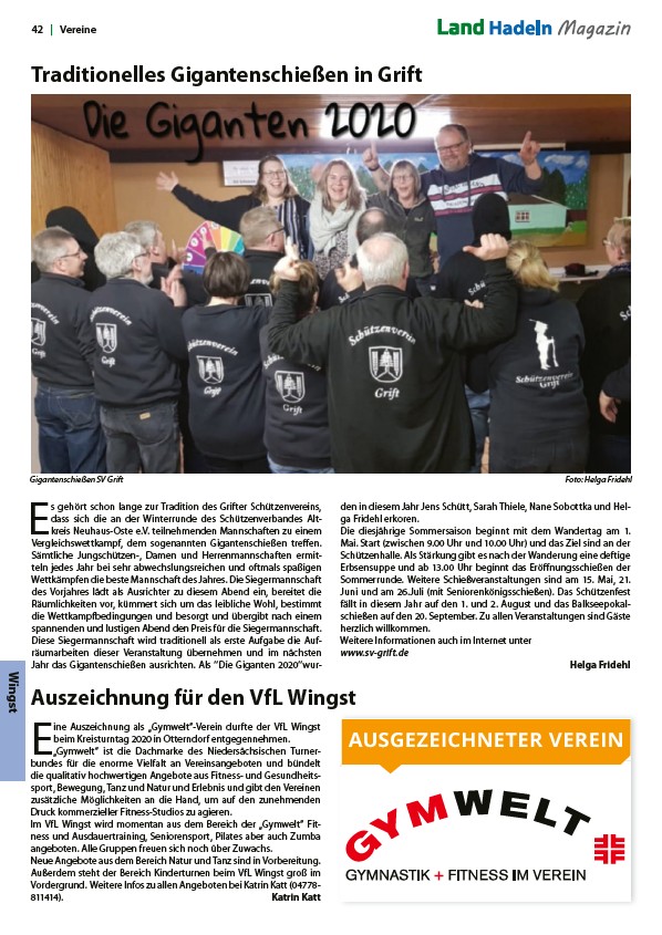 Eine Auszeichnung als „Gymwelt“-Verein durfte der VfL Wingst