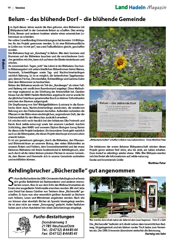 Blühpatenschaft in der Gemeinde Belum zu schaffen. Dies ermöglicht,