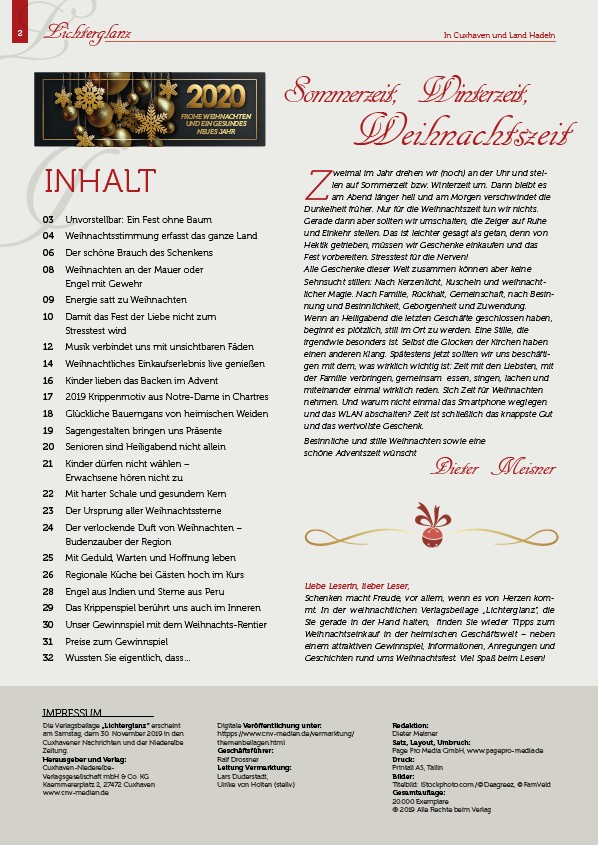 Die Verlagsbeilage „Lichterglanz“ erscheint