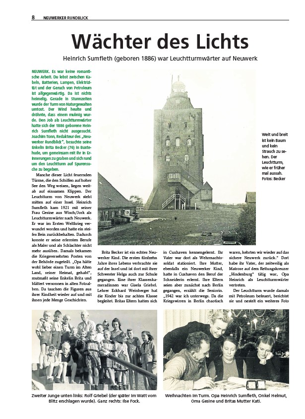 Heinrich Sumfleth (geboren 1886) war Leuchtturmwärter auf Neuwerk
