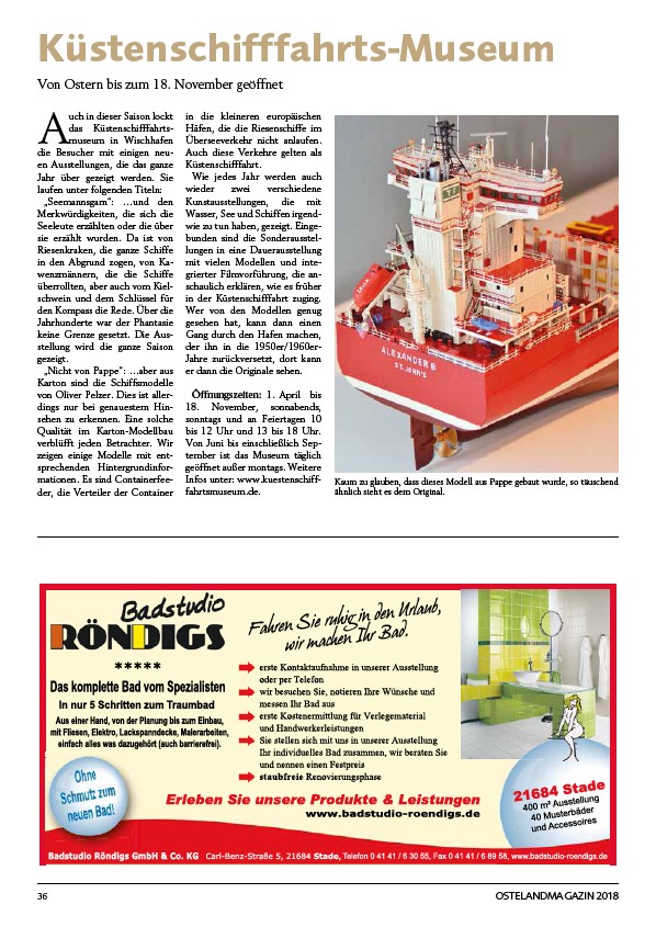 Infos unter: www.kuestenschifffahrtsmuseum.