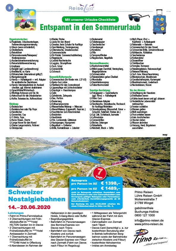 ❑ Sonnenschutz (für Kinder min. LSF 50)