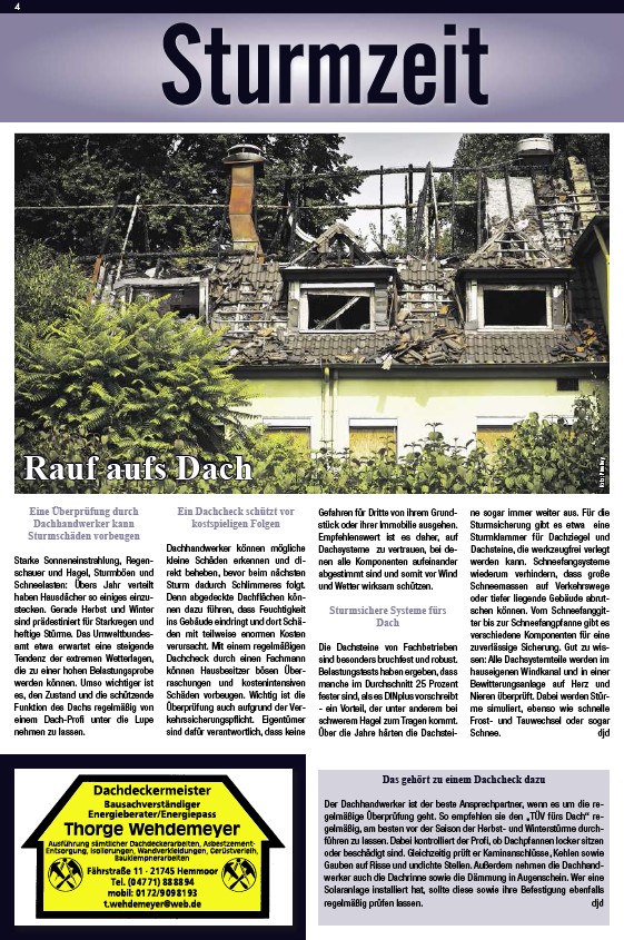 Überprüfung geht. So empfehlen sie den „TÜV fürs Dach“ regelmäßig,
