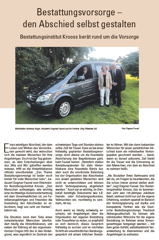 Bestattungsinstitut Krooss berät rund um die Vorsorge