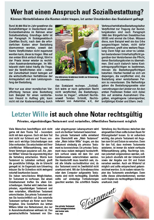 Sozialbestattung. Grundlage dafür ist