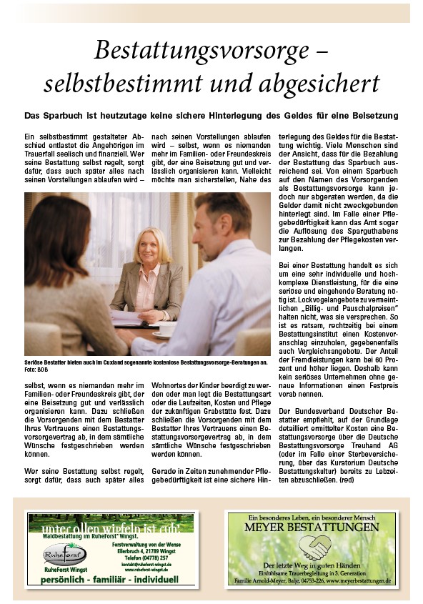 Seriöse Bestatter bieten auch im Cuxland sogenannte kostenlose Bestattungsvorsorge-Beratungen an.