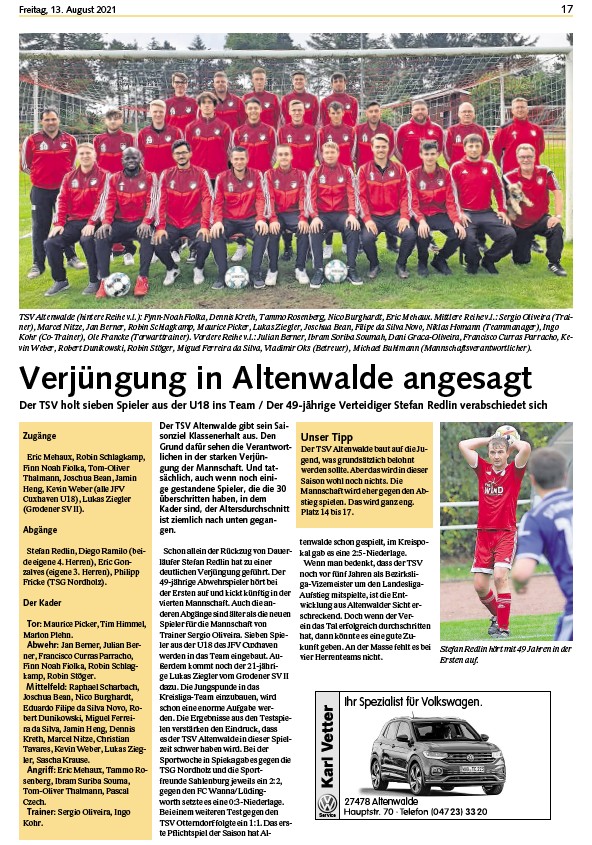 Der TSV holt sieben Spieler aus der U18 ins Team / Der 49-jährige Verteidiger Stefan Redlin verabschiedet sich