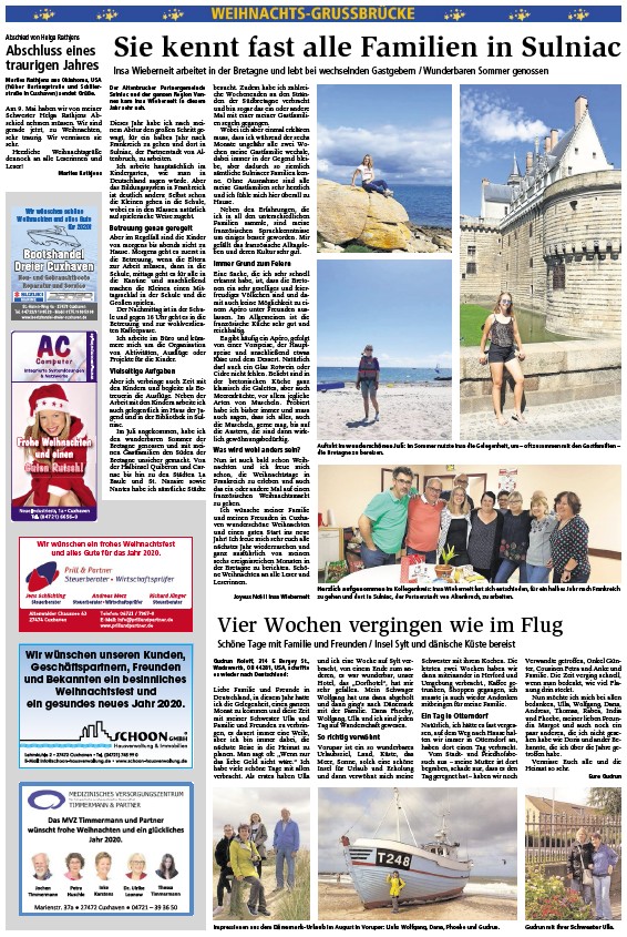 zu gehen und dort in Sulniac, der Partnerstadt von Altenbruch, zu arbeiten.