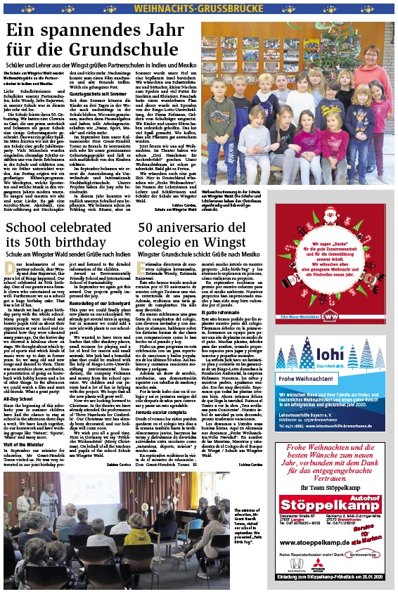 Schüler und Lehrer aus der Wingst grüßen Partnerschulen in Indien und Mexiko