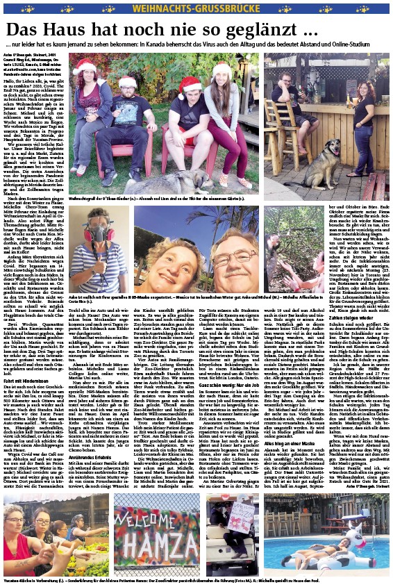 Anke ist endlich mit ihrer speziellen N 95-Maske ausgestattet. – Mexico tut im kanadischen Winter gut: Anke und Michael (M.) – Michelles Affenliebe in