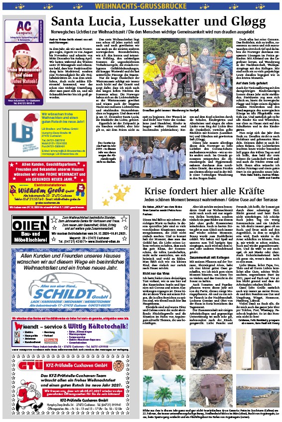 Wir haben vom 24.12.2020 bis einschließlich 5.1.2021 geschlossen.