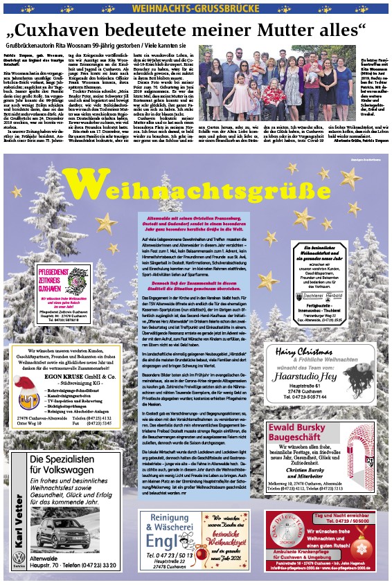 Grußbrückenautorin Rita Woosnam 99-jährig gestorben / Viele kannten sie