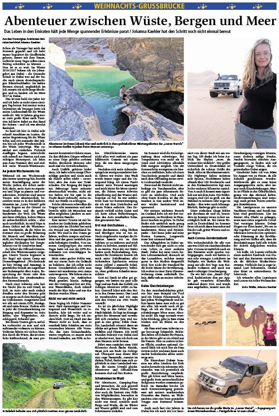 Das Leben in den Emiraten hält jede Menge spannender Erlebnisse parat / Johanna Kaehler hat den Schritt noch nicht einmal bereut