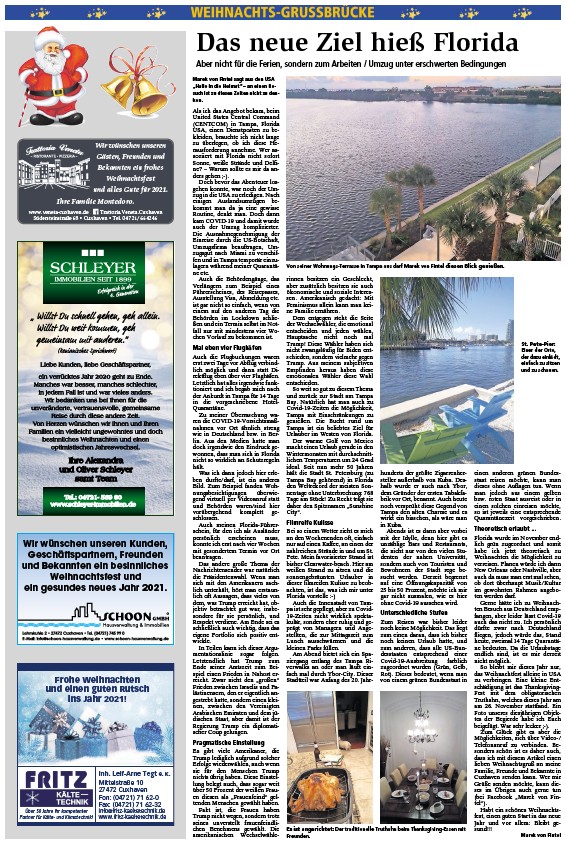 Von seiner Wohnungs-Terrasse in Tampa aus darf Marek von Fintel diesen Blick genießen.
