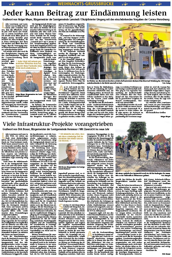 Grußwort von Holger Meyer, Bürgermeister der Samtgemeinde Lamstedt / Disziplinierter Umgang mit den einschränkenden Vorgaben der Corona-Verordnung