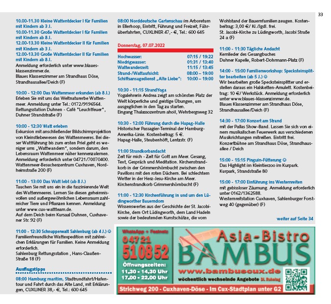 Anmeldung erforderlich unter 04721/70070400.