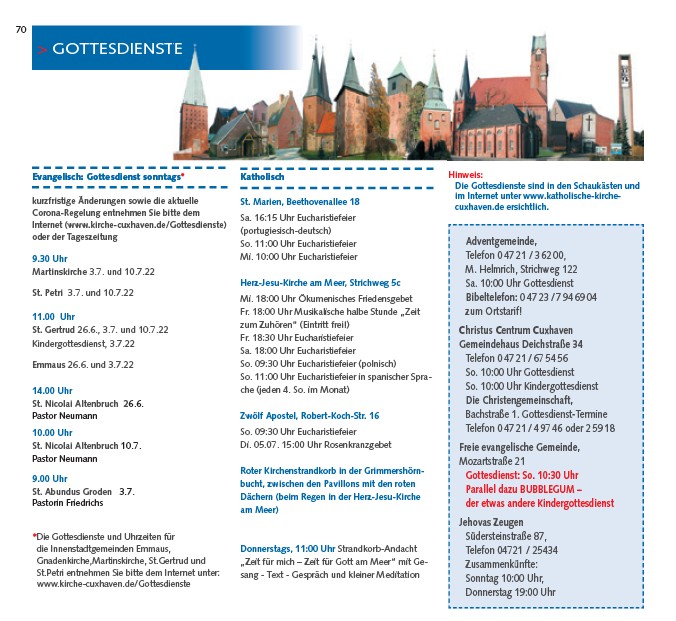 Internet (www.kirche-cuxhaven.de/Gottesdienste)