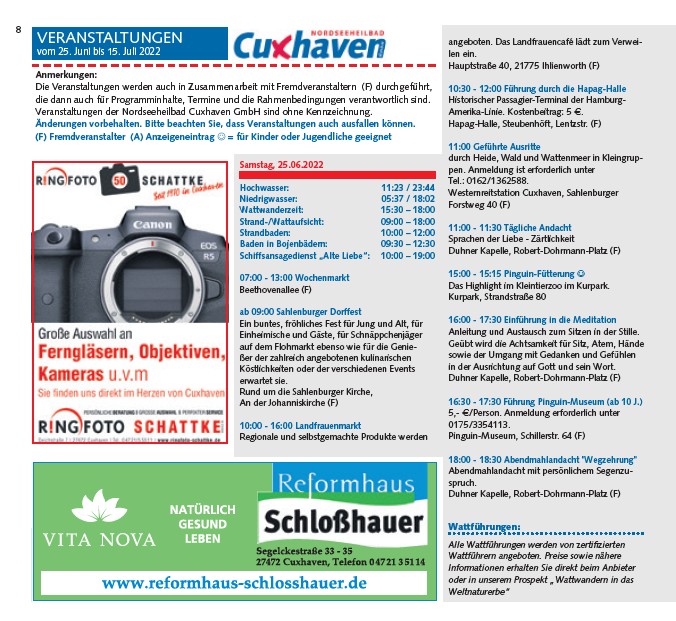 Veranstaltungen der Nordseeheilbad Cuxhaven GmbH sind ohne Kennzeichnung.