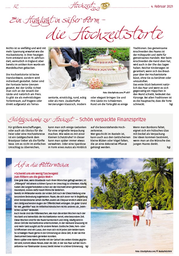 Hochzeit und keinesfalls die Hochzeitsreise nennt, eine besondere Zeit.