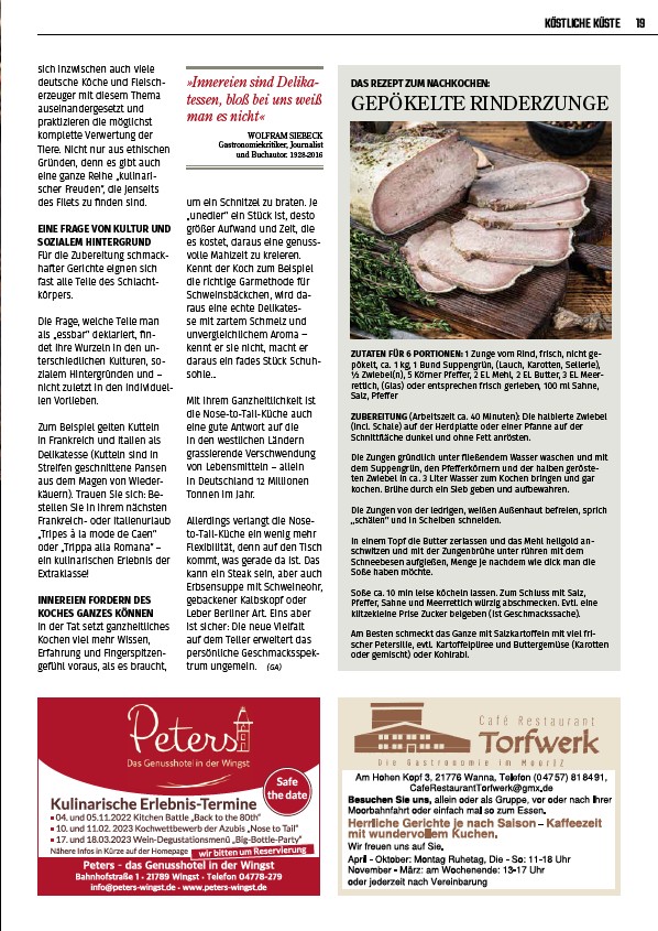 ZUTATEN FÜR 6 PORTIONEN: 1 Zunge vom Rind, frisch, nicht gepökelt,