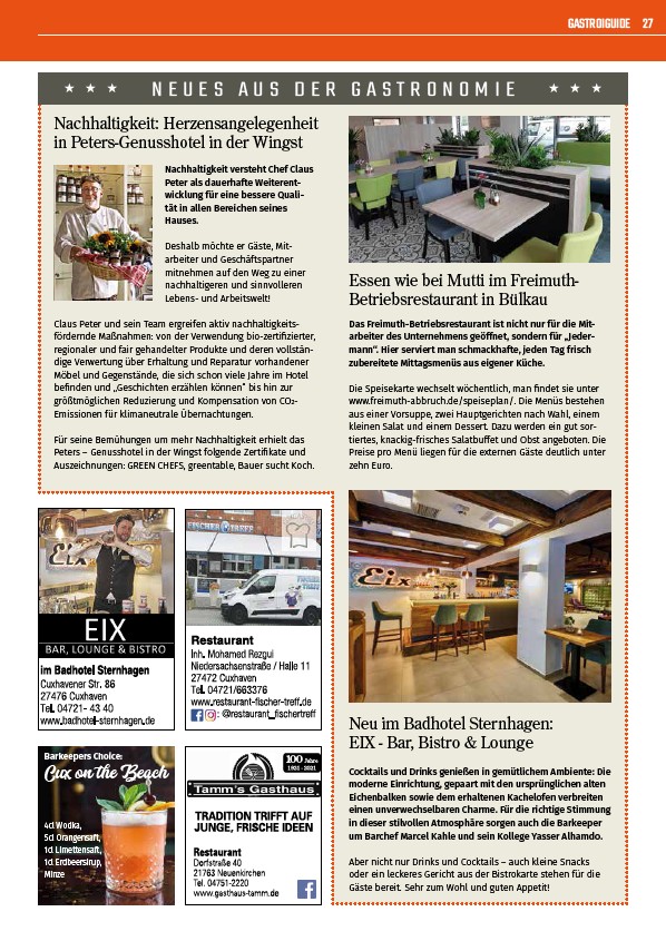 Peters – Genusshotel in der Wingst folgende Zertifikate und