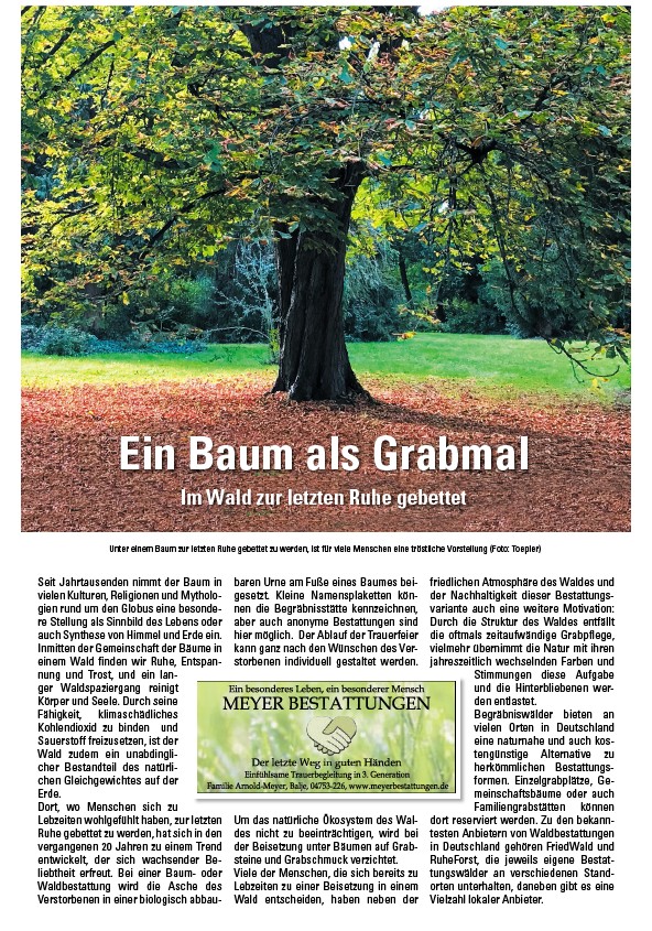 Unter einem Baum zur letzten Ruhe gebettet zu werden, ist für viele Menschen eine tröstliche Vorstellung (Foto: Toepler)