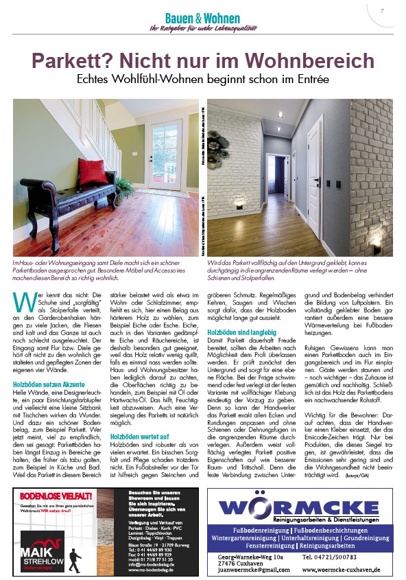 Wird das Parkett vollflächig auf den Untergrund geklebt, kann es