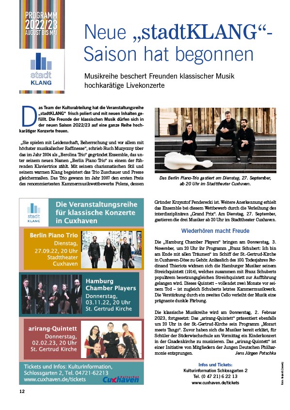 Das Berlin Piano-Trio gastiert am Dienstag, 27. September,