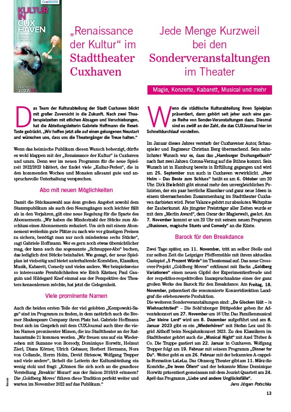 2022/2023 blättert, der findet viele „Kultur-Perlen“, die in