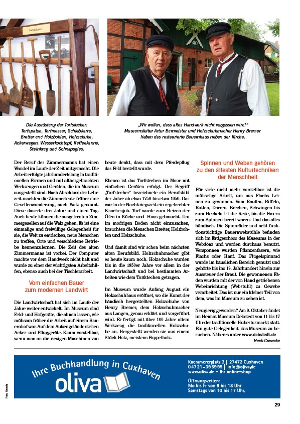 Museumsleiter Artur Burmeister und Holzschuhmacher Henry Bremer