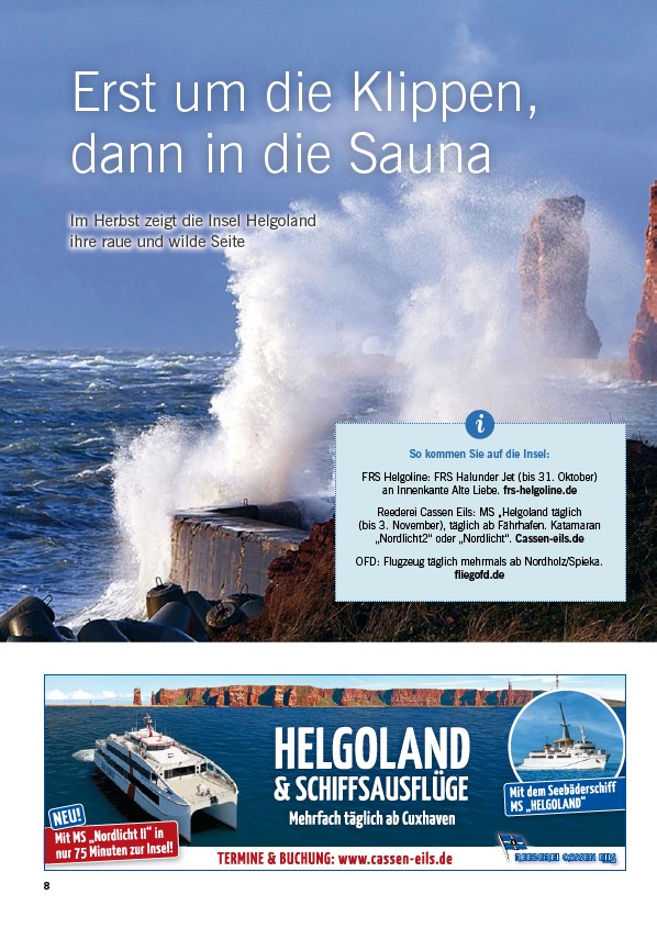 (bis 3. November), täglich ab Fährhafen. Katamaran