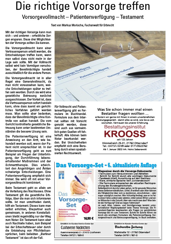 immer. Sie wird oft mit einer Vorsorgevollmacht
