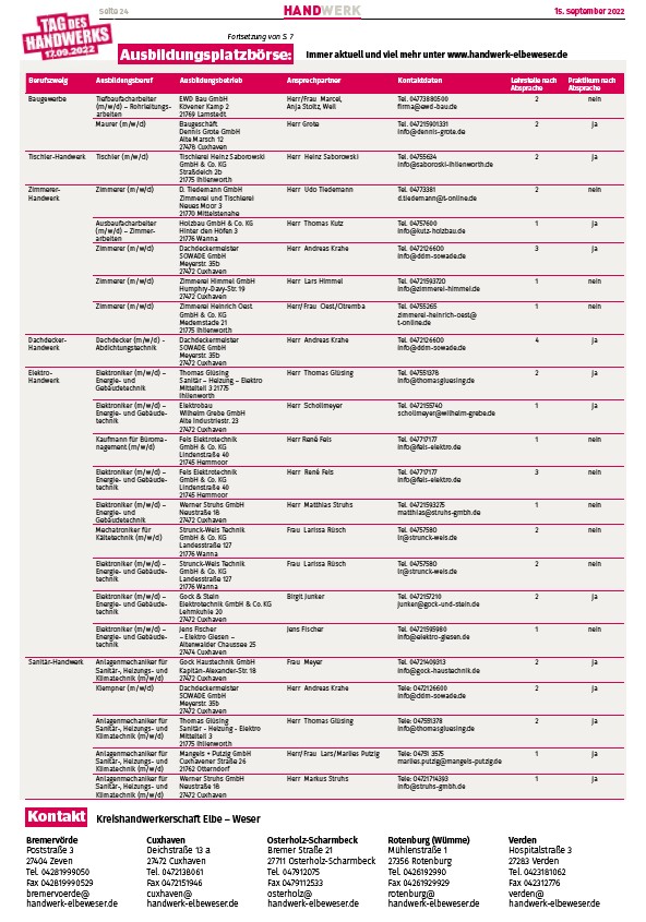 Immer aktuell und viel mehr unter www.handwerk-elbeweser.de