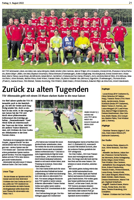 TSV Altenwalde geht mit einem 33 Mann starken Kader in die neue Saison