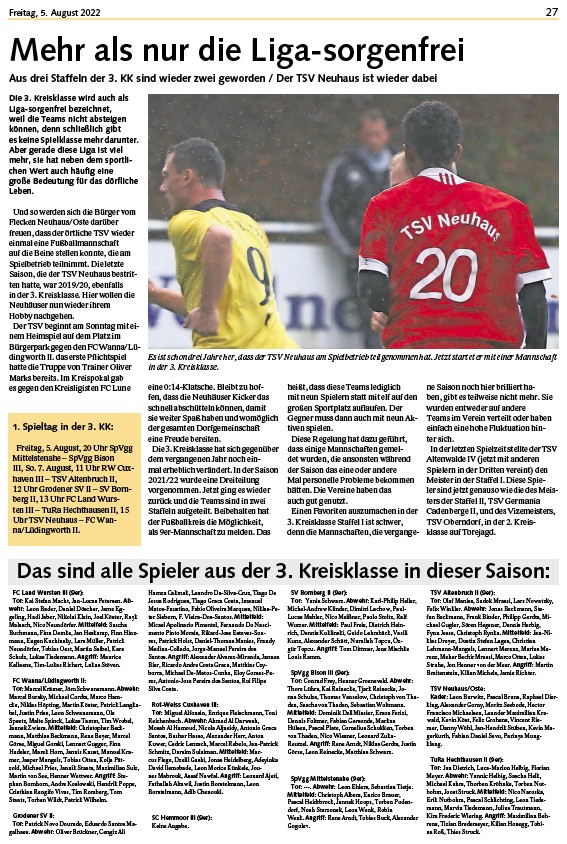 Aus drei Staffeln der 3. KK sind wieder zwei geworden / Der TSV Neuhaus ist wieder dabei