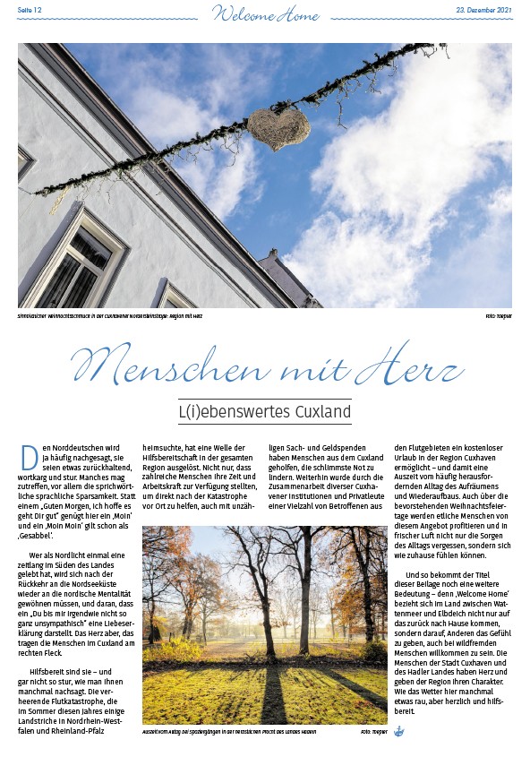 Menschen mit Herz Sinnbildlicher Weihnachtsschmuck in der Cuxhavener Nordersteinstraße: Region mit Herz Foto: Toepler