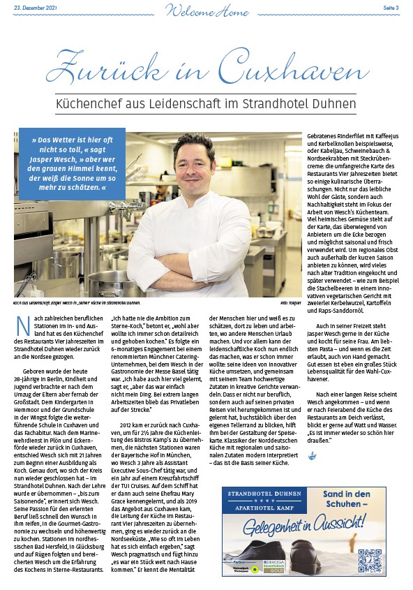Küchenchef aus Leidenschaft im Strandhotel Duhnen