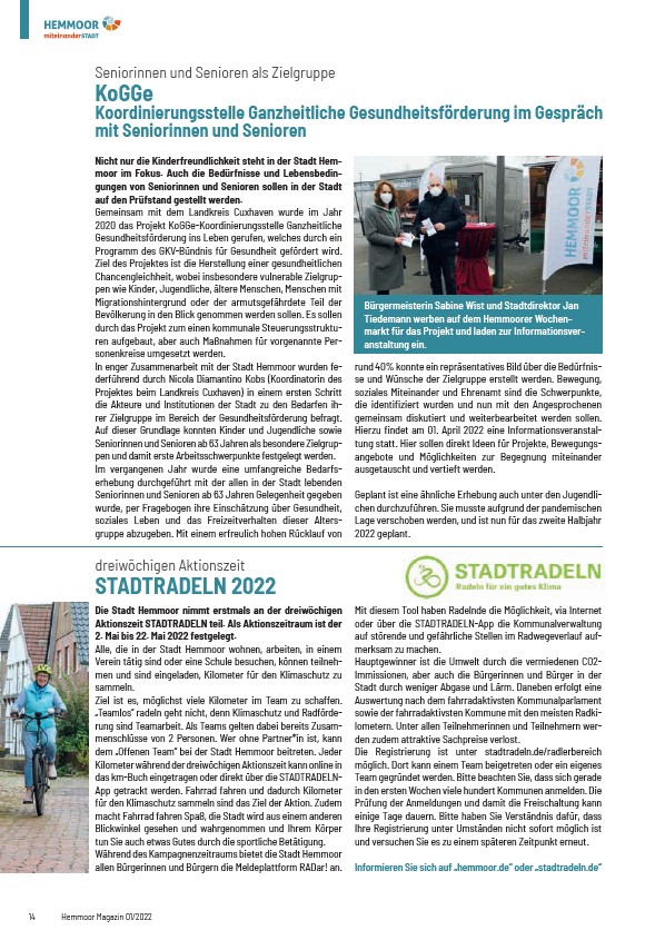 Informieren Sie sich auf „hemmoor.de“ oder „stadtradeln.de“