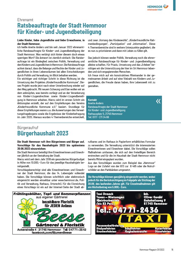 Die Stadt Hemmoor ruft ihre Bürgerinnen und Bürger auf,