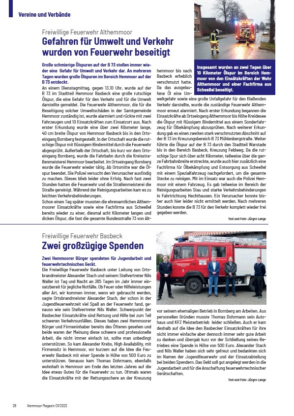 Verkehr darstellte, wurde die zuständige Feuerwehr Althemmoor
