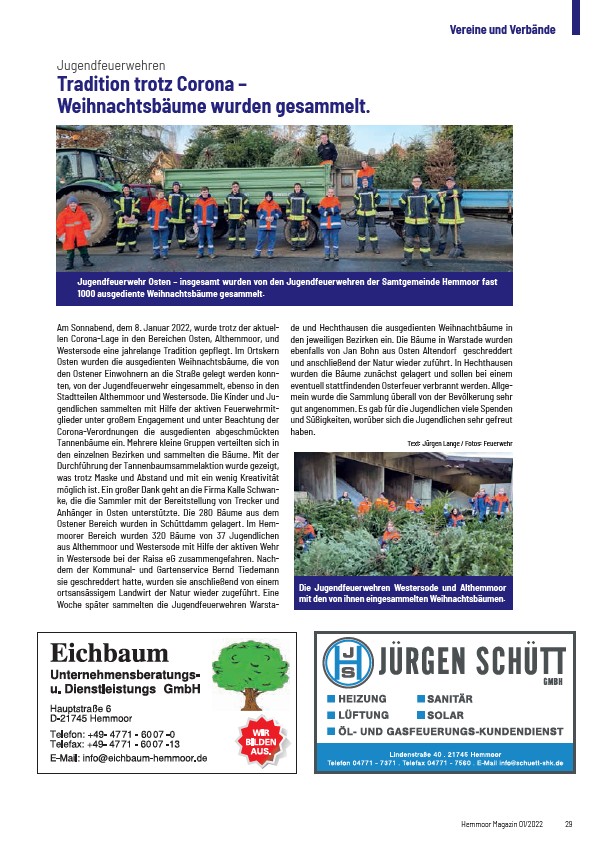 und Hechthausen die ausgedienten Weihnachtbäume in