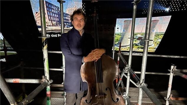 Der Kontrabassist und Komponist von Jazz und zeitgenössischer Musik steht auf der Bühne und arbeitet für Hörspiel, Film und Theater. Gramss findet das Projekt "phänomenal". "Es ist absolut einmalig und wohl die größte existierende Halbkugel, in der Kunst gemacht wird", sagt der Kontrabassist. Die beiden Künstler aus Köln wohnen seit Montag für zwei Wochen in Stade, begleiten den Aufbau und bereiten sich auf nahezu 100 jeweils 15-minütige Aufführungen vor. Welturaufführung war am Freitag, als PreussenElektra Betriebsfest feierte.