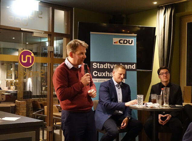 Der Landtagsabgeordnete Claus Seebeck kritisierte die aktuelle Landesregierung. Positiv blicke er auf die Hafenwirtschaft, da NPorts im nächsten Jahr 125 Millionen Euro extra bekäme. Davon gehen 62,5 Millionen Euro nach Cuxhaven und Stade. Kritik hatte Seebeck an der Bildungs- sowie Wirtschaftspolitik. Das Land habe statt einer zielgerichteten Investition in die Schulen 85 Tausend Lehrer und 76 Tausend Schüler mit Ipads ausgestattet.