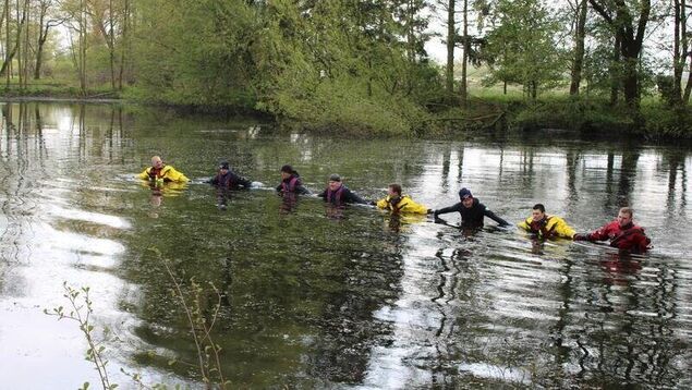 Taucher der DLRG und Stader Feuerwehr in Tümpeln im Einsatz